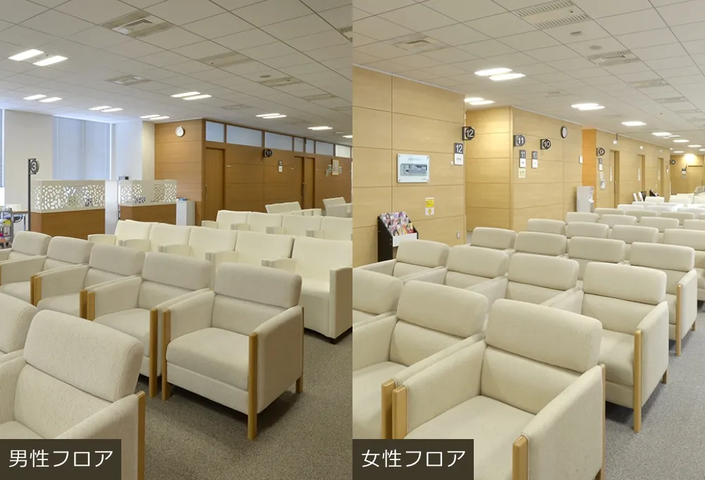 仙台の中心部にある高層ビル「トラストタワー」に位置し、東北エリア最大級の規模を誇る当院は、快適性を重視した男女別エリア。広々とした空間でリラックスしてお過ごしいただけます。また、検査は個室で行われますので、周りを気にすることなくご受診いただけます。
