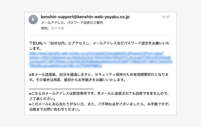 登録が完了すると、再度自動送信メールが届きます。メールに記載されているURLをクリックし、指示に従って問診にご回答ください。